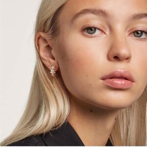 Gold 14k Gold Plated Flower Cubic Zirconia Hoop Earrings
