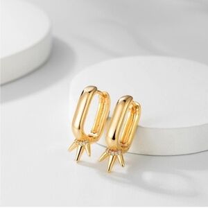 Gold 14k Gold Plated Oval Cubic Zirconia Hoop Earrings