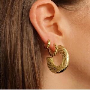 Gold 14k Gold Plated Textured Hoop Cuff Earrings