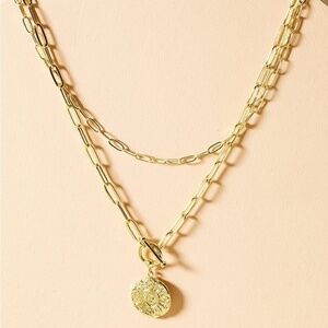Gold 14k Gold Plated Textured Pendant Disc Layered Necklace