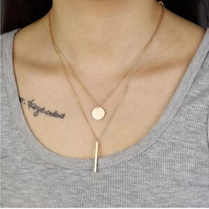 Gold 14k Gold Plated 2pc Bar & Disc Necklace Set