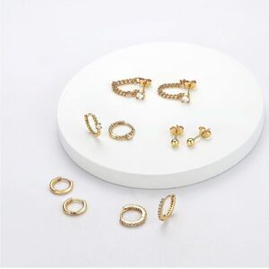 Gold 14k Gold Plated Hoop Stud 4 Pairs Earring Set