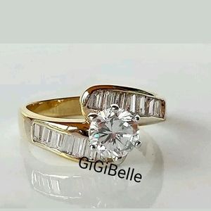 Gold 1.5CW+ cubic zirconia Solitaire Ring with Accents size 10 cocktail ring