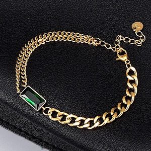 Gold 18K GP Emerald Green Chain Link Bracelet