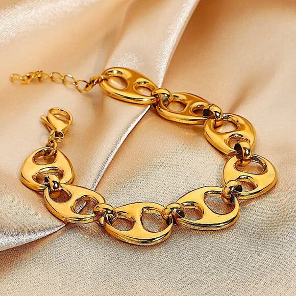 Gold 18K Mariner Pignose Chain Link Bracelet