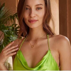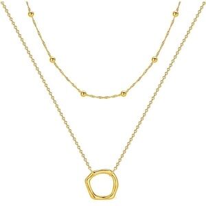 Gold 18k Gold Plated 2pc Beaded Necklace with Circle Pendant Necklace