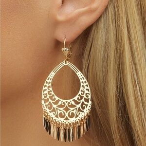 Gold 18k Gold Plated Filigree Cut Out Drop Earrings
