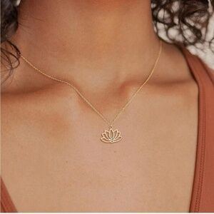 Gold 18k Gold Plated Lotus Flower Cubic Zirconia Charm Chain Necklace
