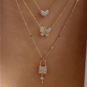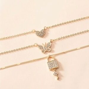 Gold 1pc Heart Lock Rhinestone Layered Necklace