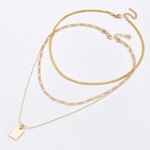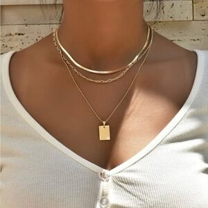 Gold 2pc Rectangle Bar Chain Necklace Set