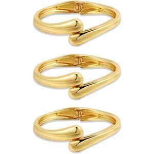 Gold 3 Pcs Bangle Bracelets for Women and Teens Adjustable Chunky Twist Cuff