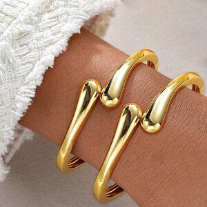 ✦ Elegant & Trendy Design ✦ This stunning gold bangle bracelet features a sleek, modern, and chunky design, making it the perfect accessory to elevate any outfit. Its unique hug shape adds a touch of sophistication and elegance, making it ideal for women and teens alike who appreciate fashion-forward jewelry.