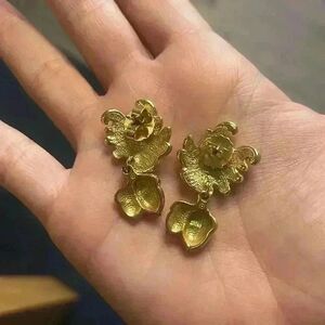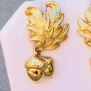 Gold Acorn Dangle Drop Vintage Earrings for Pierced Ears 1960’s