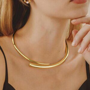 Features: Striking chunky gold collar with a sleek teardrop pendant, designed from eco-friendly alloy steel for a shiny, polished finish. Hinged with a spring clasp for easy wear and a secure fit, making it comfy for all-day flair. Versatile enough for layered looks or sola standout moments.