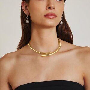 Gold Alloy Choker Necklace Women Teardrop Statement Trendy Jewelry Spring Hinged