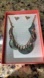 Gift Set Gold and green necklace with Ethnic tribal pattern design.