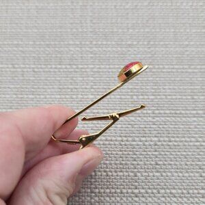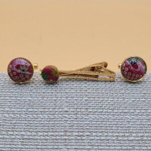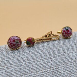 Gold And Red Floral Tie Clip And Cuff Links Set B791