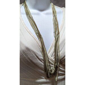 Embrace elegance with this Gold and White Multilayer Chain Necklace. This stunning piece features layered chains in both gold and white, providing a unique style and sophisticated touch to any outfit.