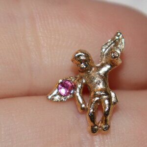 ๐ผ Gold Angel Lapel Pin โ Pink Rhinestone Accent โ .5" Tall ๐
