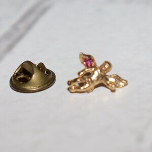 ๐ Delicate gold-tone angel with outstretched wings ๐ธ Single pink rhinestone adds a soft sparkle ๐ Approx. .5" tallโpetite and perfect for layering ๐ Lapel-style pin with clutch backing ๐งผ Excellent vintage condition