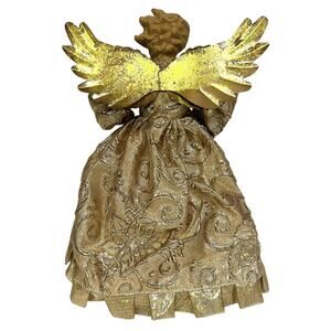 Gold Angel Tree Topper with Metal Wings Holiday Christmas Decor 12”
