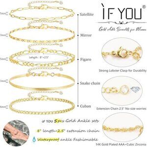 Gold Anklet Set for Women Waterproof Layered Cuban Chain Adjustable Jewelry