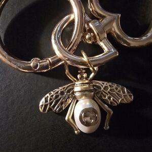 Gold Authentic Gucci Stamped Bee Charm Keychain