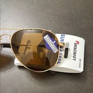 These aviator sunglasses feature a sleek gold metal frame and brown-tinted lenses, offering a timeless and sophisticated look. The classic double bridge design and thin temple arms ensure a comfortable fit, making them a stylish accessory for any occasion.