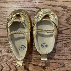 Gold baby soft dress shoes with bow and grips on bottom size 12-18 months