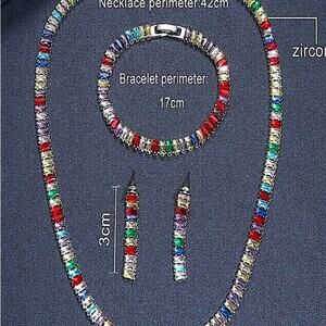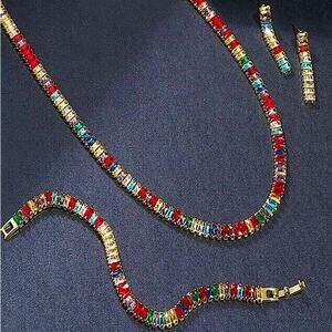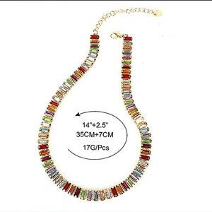 Gold 18k plated Baguette Multicolor Diamond Rhinestone Choker with matching bracelet and earrings.
