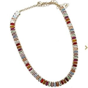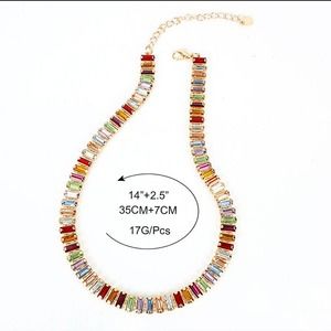 Gold Baguette Multicolor Diamond Rhinestone Choker with matching earrings and bracelet.