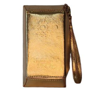 Gold Bar Wristlet Clutch Purse with Red Interior