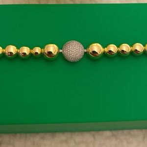 Elevate your everyday stack with an elevated essential with a refined, minimalist feel. This gold-plated bracelet features smooth, high-polish gold tone bead look and a pavé cubic zirconia center sphere for subtle sparkle.