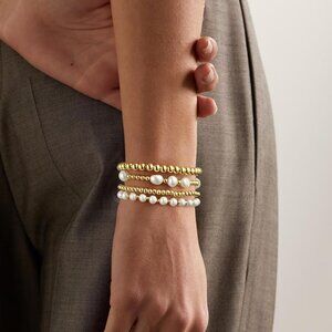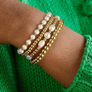 Gold Beaded Bracelets for Women Pearl Baroque Stretch Jewelry Gift — Elegant and timeless accessory.