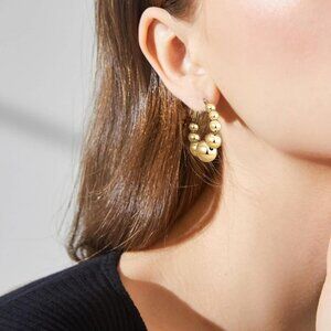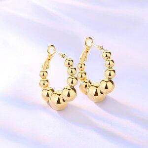 Gold Beaded Hoop Earrings Womens Chunky Silver Ball Jewelry Gift
