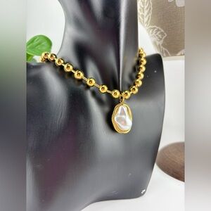 Elegant and modern โ this gold beaded chain necklace features a stunning irregular baroque-style pearl pendant framed in a gold setting. A perfect mix of classic sophistication and contemporary style, it adds a touch of luxury to any outfit. ๐คโจ