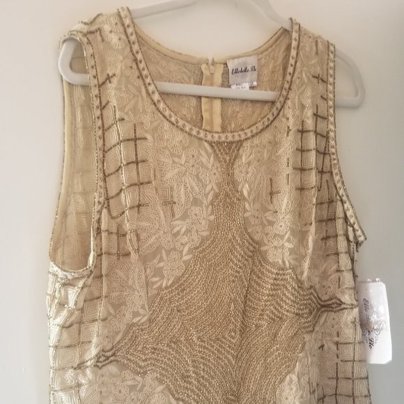 Gold Beaded top for that special occasion size 2 x 100% silk zipper back closure
