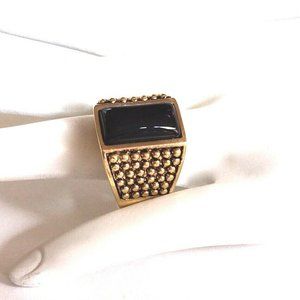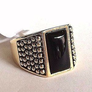 Gold Black Onyx Stone Ring Size 10 11 12 13 Mens Womens Unisex Statement