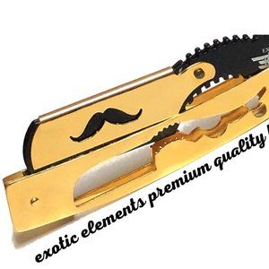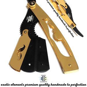 Gold and Black Straight Edge with Razor Design Engraved Handle