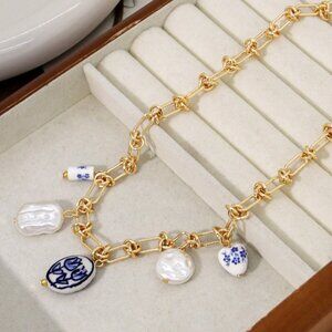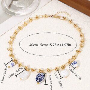 Gold Boho Women's Heart & Faux Pearl Pendant Necklace