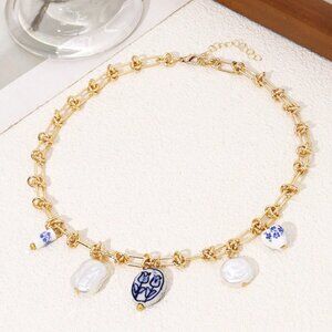 Gold Boho Women's Heart & Faux Pearl Pendant Necklace
