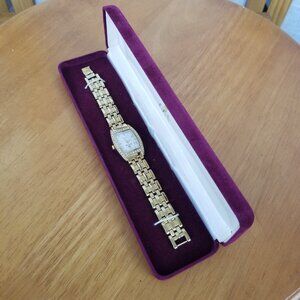 Gold Bracelet Watch Crystal Bezel Gift Box Premier Designs Needs Battery