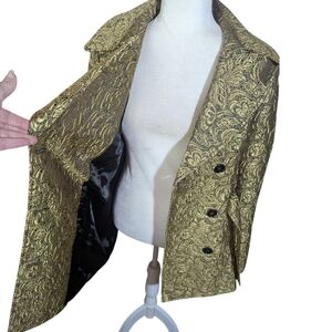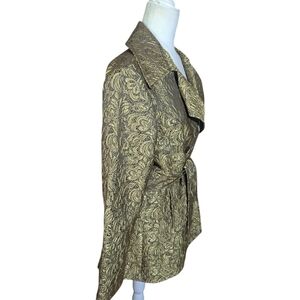 Gold Brocade Over Black Textured Chic double Breasted Belted Trench Coat Sz M