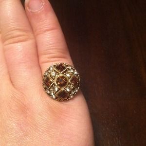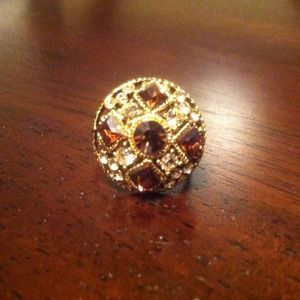 This gold is encrusted with pale and dark brown Smoky Quarts and is adjustable. Only worn twice.
