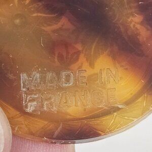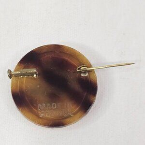 Gold Brown Tone Lucite Floral Brooch Clear Rhinestone Push-Pull Safety Trombone Made in France
