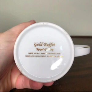 tags: Royal Gallery Gold Buffet mug, 1991 hot air balloon mug, vintage porcelain mug, collectible balloon design mug, limited edition Royal Gallery cup, decorative hot air balloon drinkware, unique aviation-themed mug, pre-owned Royal Gallery mug, Sri Lanka-made porcelain cup, gold-rimmed balloon mug