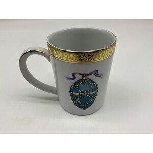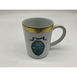 * Gold Buffet Royal Gallery Teal Blue Faberge Egg Dessert Plate and Coffee Cup VTG