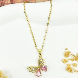Gold Butterfly Necklace Dainty Cubic Zirconia Pendant 18K Layered Jewelry Gift