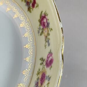 Gold Castle Vtg 1950s Japan Mid-Century 7.5 in China Bowl Rose Floral Gold Rim - From occupied Japan. My father purchased a set of this china for his mother in the 1950's and although formal, it was used everyday. Clean pre-owned vintage condition. Some wear on gold rim on edge & inside bowl. Light scuffs from regular use, but no cracks or chips. Has pagoda stamp on back. Review photos carefully for all details.
