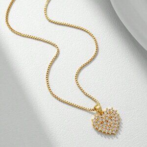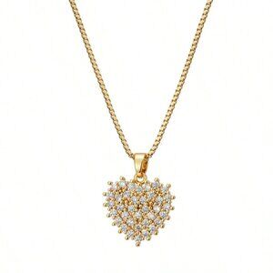 Gold Casual Women's Gold-Plated Stainless Steel Cubic Zirconia Heart Necklace